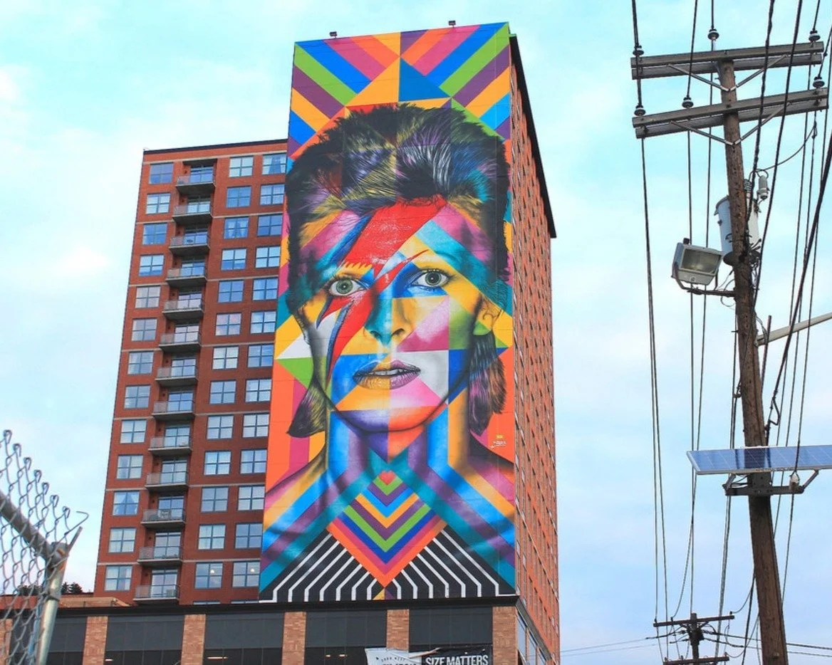 The second concept was inspired both by the colorful, abstract David Bowie mural and by the building blocks of writing itself—the alphabet. Just as every story begins with letters, the design broke writing down to its simplest forms. The JCW letters could be rearranged like alphabet blocks, symbolizing the endless ways writers shape words into stories. Bright, abstract shapes and bold colors mirrored the energy of the Bowie mural—eye-catching, modern, and full of creative possibility.