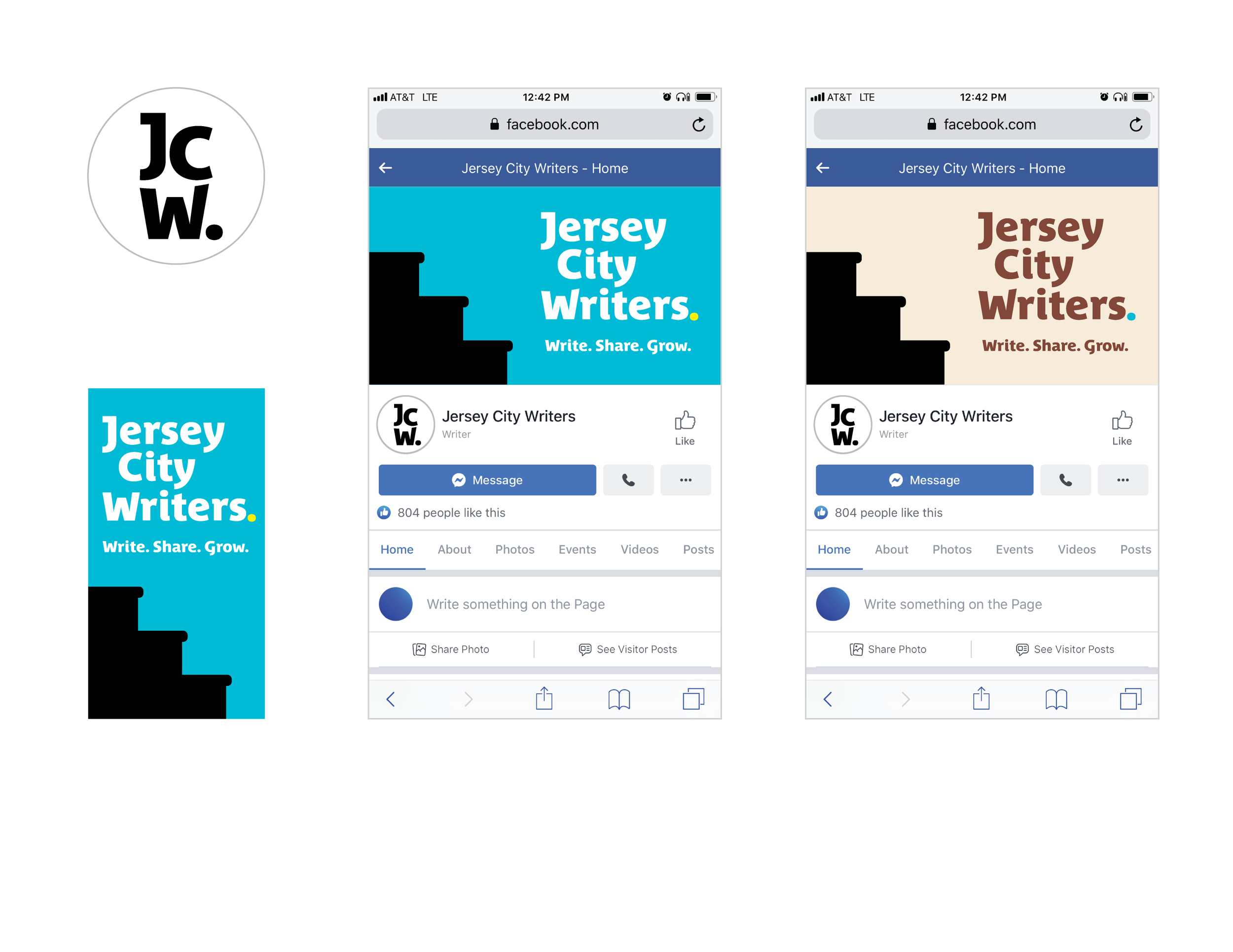 When the Jersey City Writers group approached me about designing their new logo, their goal was clear: create a visual identity that felt friendly, welcoming, and cohesive across their social media channels—and one that would look just as great on a tote bag as it does on a screen.